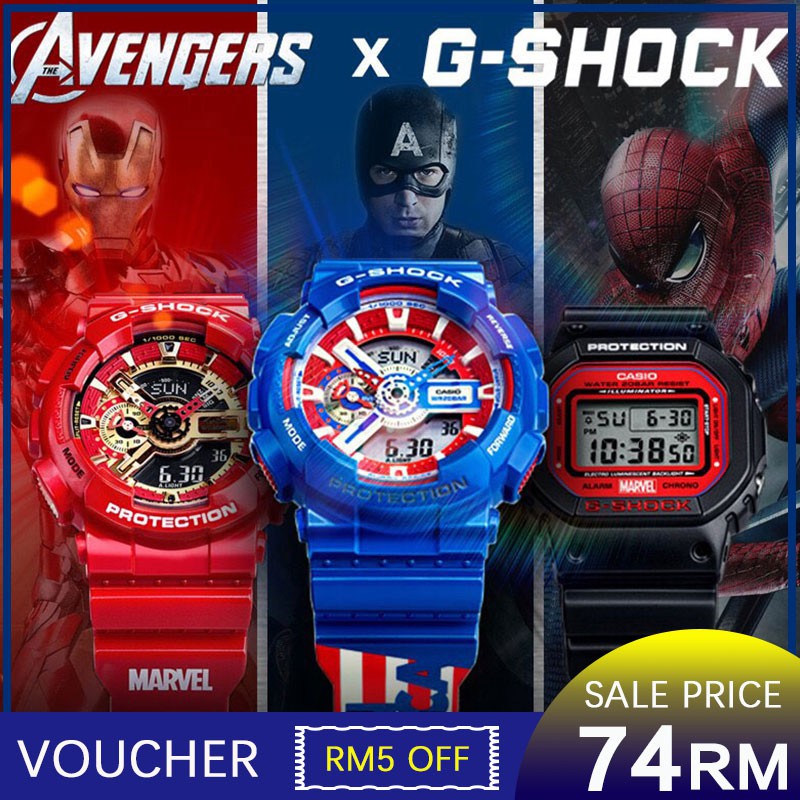 Casio is releasing a g shock x marvel avengers collection. Unfortunately for the rest of the world including singapore fans the avengers watches are exclusively available for the china market. Casios avengers g shock watches feature spider man iron man captain america.
